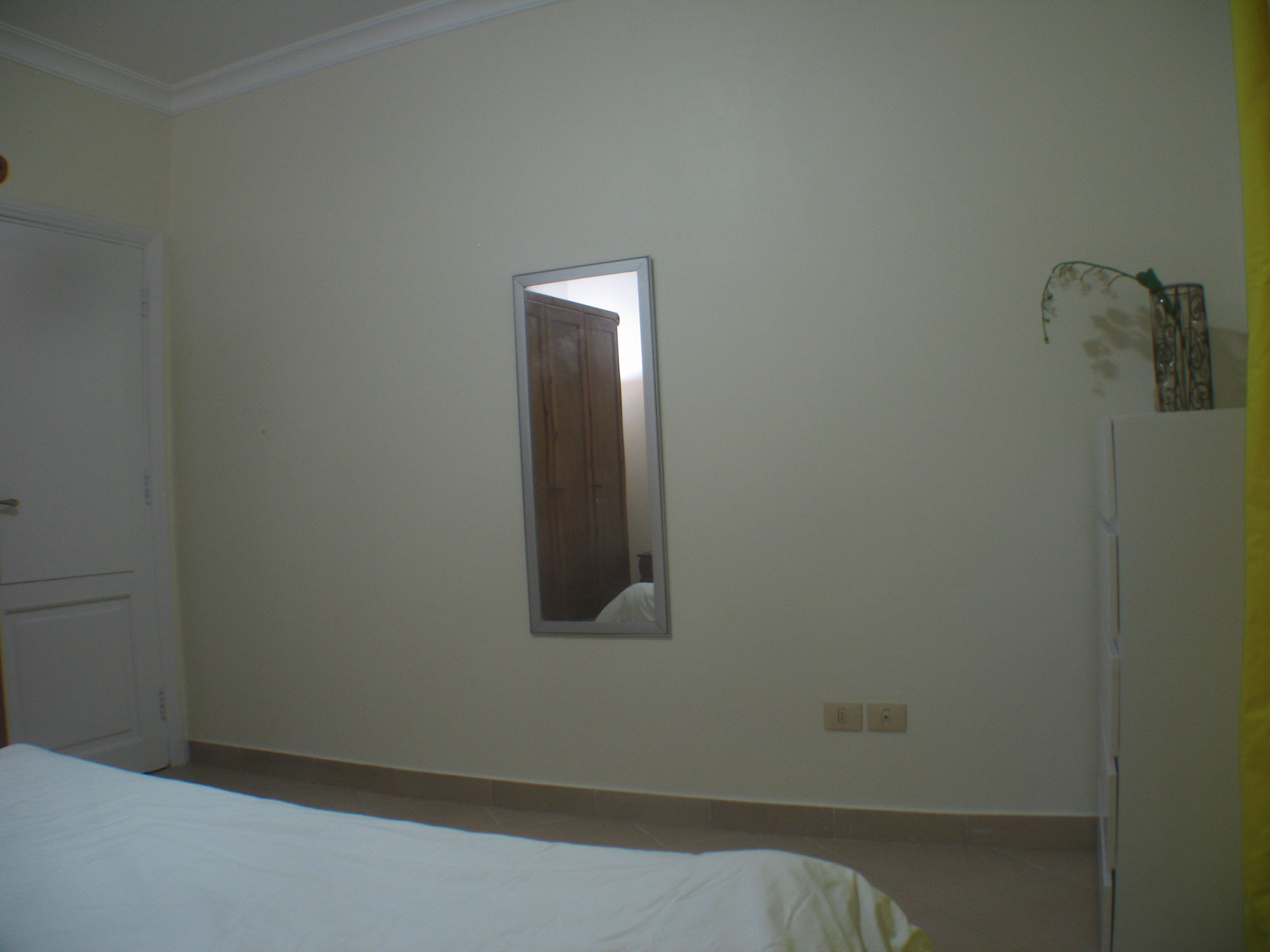 تحتوي غرفة النوم علي سرير كبير ، كومود ، تسريحه ، وخزانة ملابس كبيرة